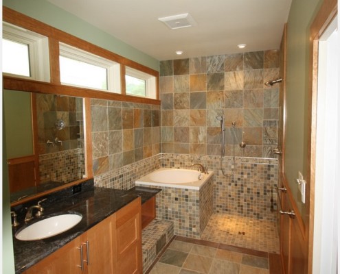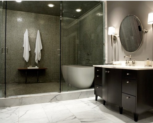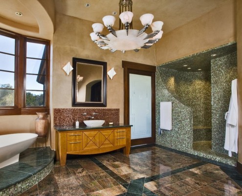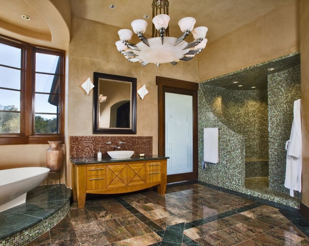 Также стоит добавить плитку мозаику, которая с давних пор используется для отделки ванных комнат. Имеет несколько видов: