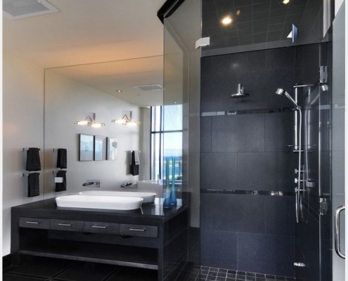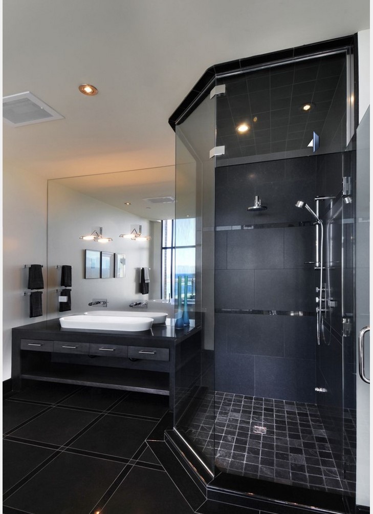 Категорически не рекомендуется использовать темные цвета. Ванная комната будет выглядеть мрачно и гнетуще. Ни о какой энергетической зарядке в такой атмосфере речи быть не может.