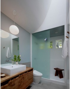 Душевая кабина с перегородкой не требует особых решений по ее включению в общий цветовой фон ванной комнаты
