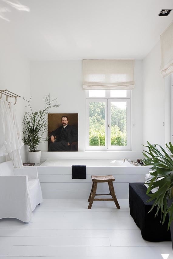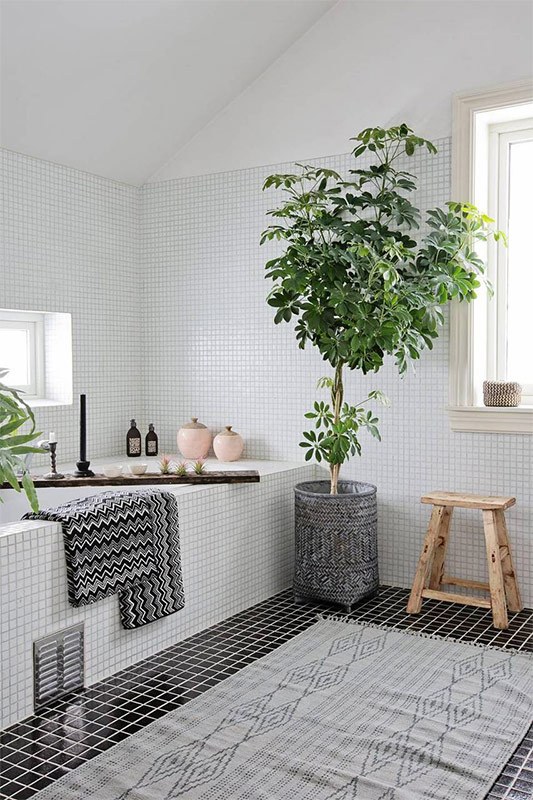 Позаботьтесь о многофункциональности предметов интерьера в ванной. К примеру, табурет-стремянка может также служить и подставкой для ног.
