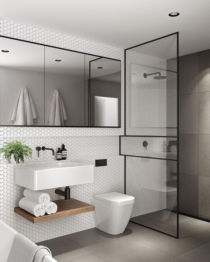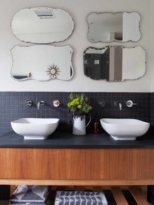 Контраст со стенами и светлой сантехникой сделает комнату более выразительной, но выбирая темные тона, будьте избирательны к аксессуарам – они должны гармонировать друг с другом и органично смотреться на общем фоне.