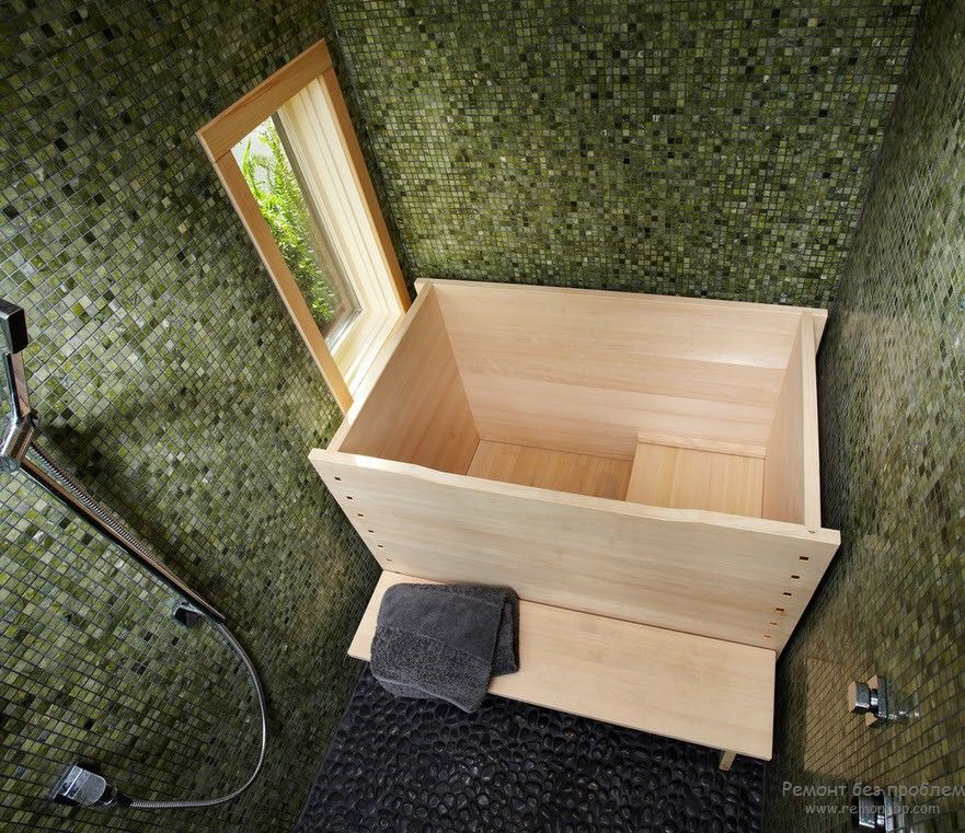 Собственно ванна (офуро), в которую набирается очень горячая (по меркам европейцев вода – 40о и больше) с ароматизаторами и благовониями (для полной релаксации). Чтобы не остывала вода, используется печной подогрев снизу и крышка из резины или дерева сверху.