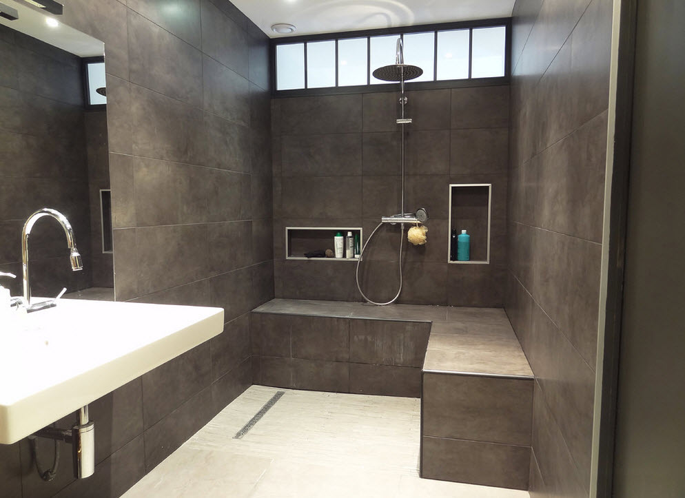 Душевая кабинка напоминает турецкую баню – хамам – со специальными мраморными сиденьями. В такой конструкции сидений обязательно нужно продумать технологию их подогрева: