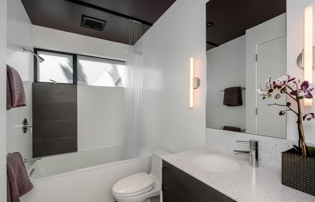 В первую очередь при ремонте ванных комнат уделяется внимание потолкам. Традиционно это белые или светлые конструкции: