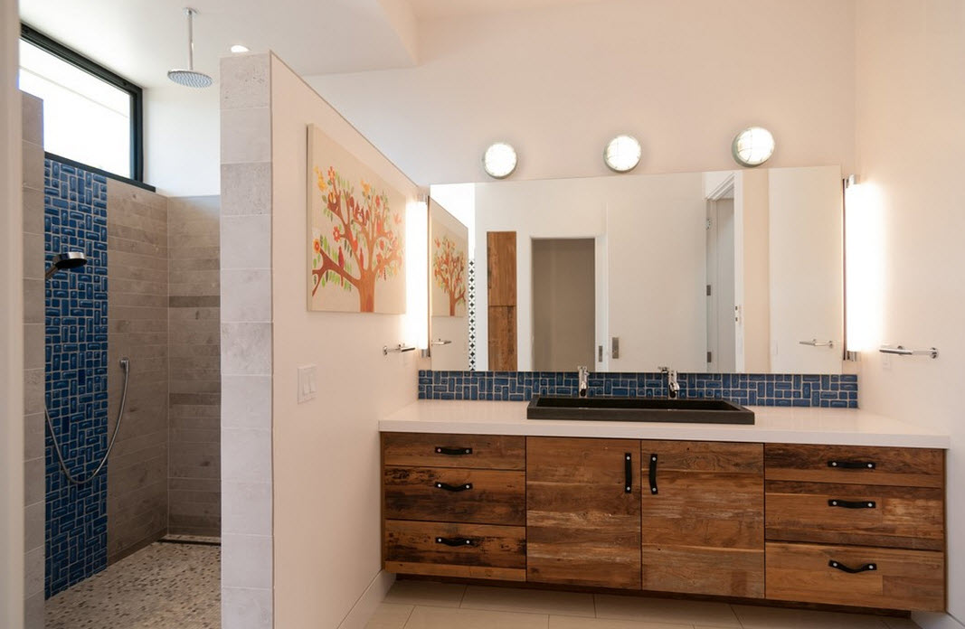 Как видно из примеров, способов нестандартного похода к оформлению и оборудованию ванных комнат в стиле модернизм очень много. Все они разнообразны и каждый вправе сам для себя решить, что именно подойдет для его помещения.