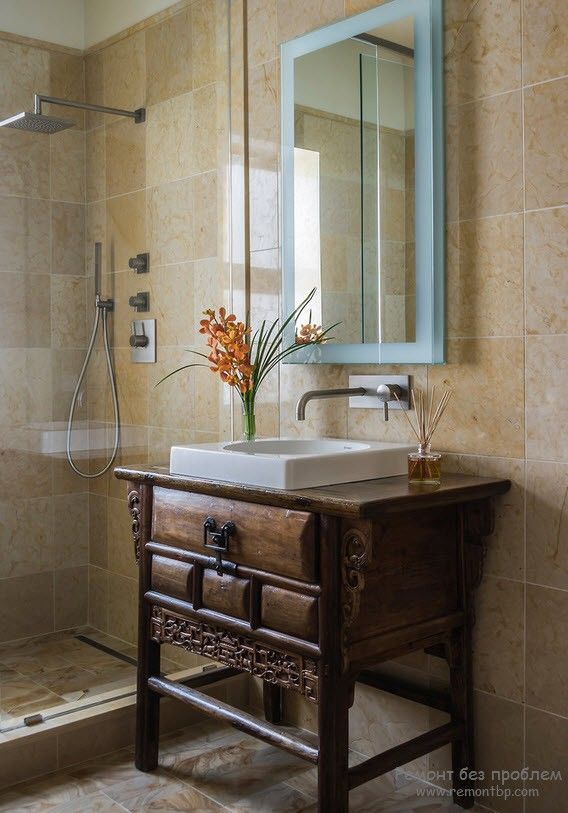 После принятия душа приятно наступить не на холодный кафельный пол, а на теплый коврик. Он может быть резиновый или хлопковый. Главное требование к коврику – чтобы он не скользил по кафелю. Зеркало в ванной может стать местом для хранения, если на него установить полочку для мелочей, таких как бритвенные станки, зубные щетки, расчески и другие вещи первой необходимости.