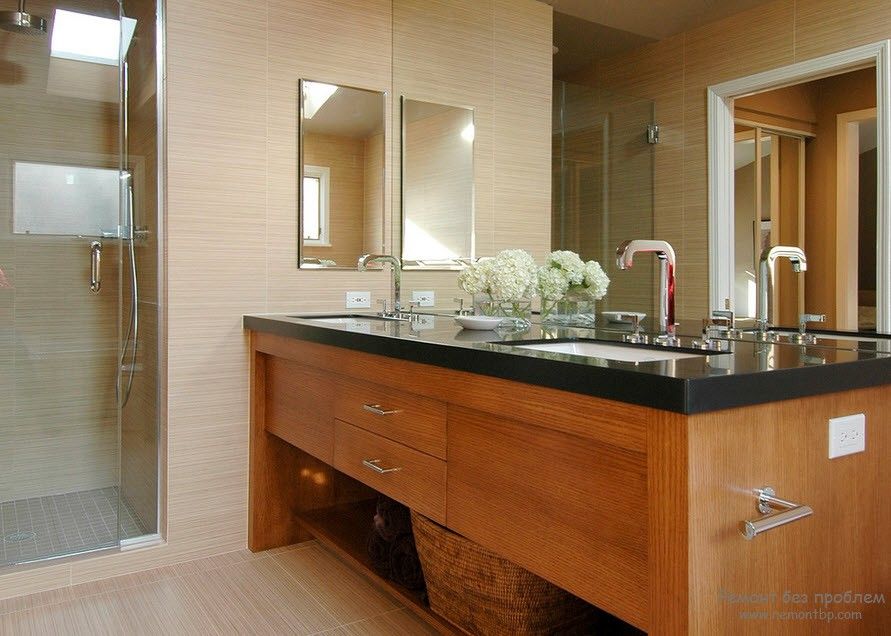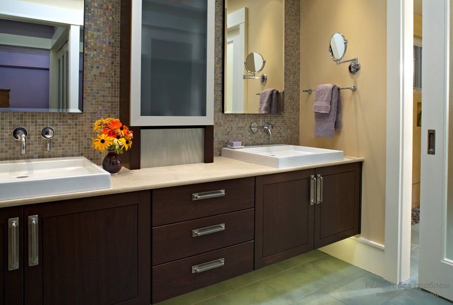 Очень удобно хранить туалетную бумагу, средства личной гигиены, а также бытовую химию прямо в ванной комнате. Но все это, конечно, лучше убрать в удобный навесной шкафчик, либо в тумбочку под умывальником. Самые высокие требования предъявляются к материалам, из которого изготовлена мебель для ванных комнат. Она должна быть износостойкой, устойчивой к влаге и распространению грибка. Мебель для ванных изготавливается чаще всего из натуральной древесины или пластика. Также очень полезными и функциональными могут оказаться этажерки. Пластиковые или хромированные, они могут быть прикреплены к стенам, или стоять на полу. Выбирая этажерку, следует обратить внимание на полки. Лучше, если они будут с прорезями, сквозь которые может стекать вода. Так можно избежать застоя влаги и образования плесени в ванной.