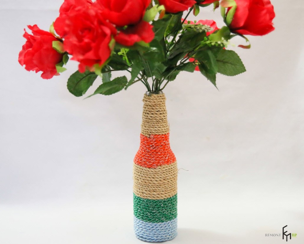 Модный элемент декора – ваза ручной работы из стеклянной бутылки