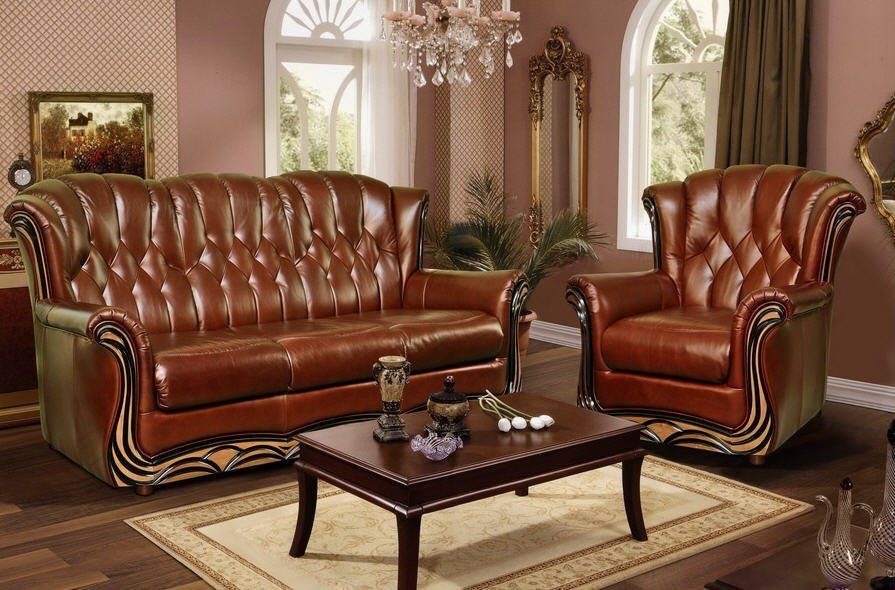 Барочные диваны (стиль барокко) на высоких ножках декорированы вычурными узорами и оснащены искусными резными подлокотниками.