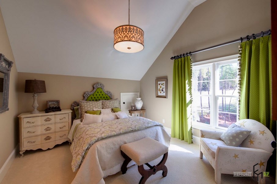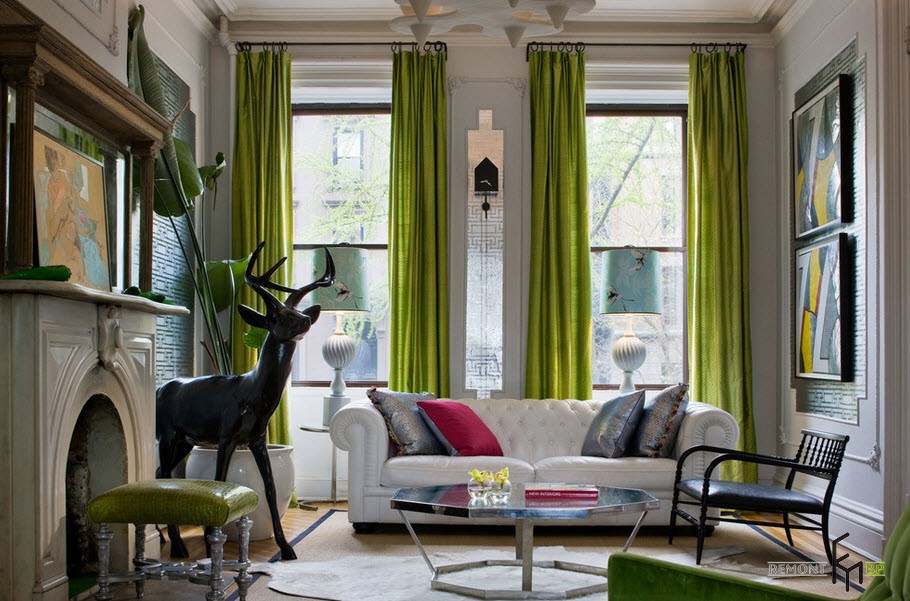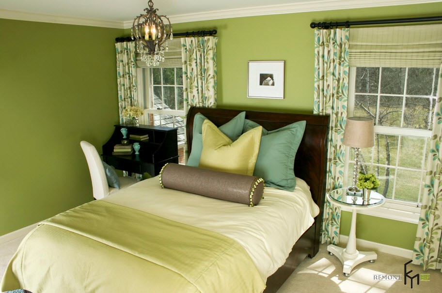Самые удачные цветовые решения для комнаты с зелеными шторами