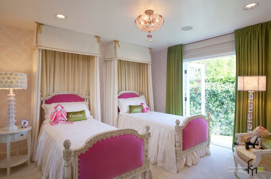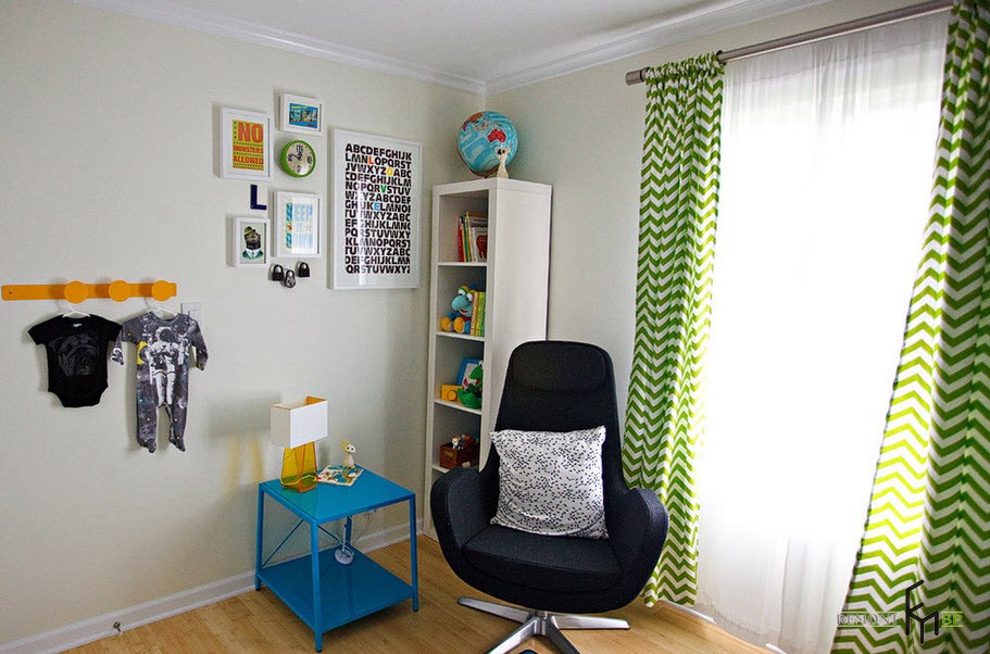 В комнате для самых маленьких домочадцев наиболее уютно будут смотреться шторы травянистых оттенков в сочетании с бежевыми, белыми или желтыми цветами. Пространство, где проживает подросток или ребенок младшего школьного возраста, рекомендуется украсить изумрудно-зеленым текстилем. Этот оттенок способствует успокоению, повышает позитивный настрой и усиливает концентрацию внимания.