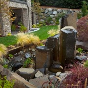 Главное – организовать поток воды таким образом, чтобы падал он с высоты полтора – двух метров. Использование водостоков поможет изменить размер и форму струи. К примеру, для получения очень мощной струи, необходимо через узкие стоки пропустить очень большой объем воды. А для плавного стекания воды, скажем, по поверхности какого-нибудь камня, потребуется маленький напор воды. Для эффекта «зеркальной стены» необходим широкий и ровный водосток с установленными по бокам направляющими бордюрами.