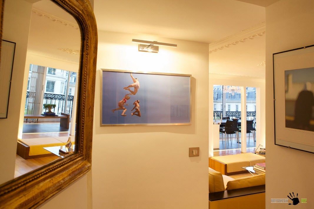 Небольшая квартира в Париже располагается на верхнем этаже старинного здания. Этот факт позволяет несколько усилить проявления преимуществ ее панорамных окон.