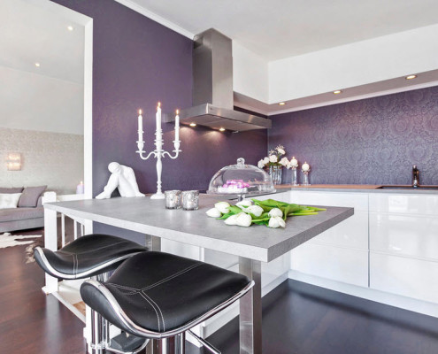 Второй подход применяется для уже не новых помещений. Для начала следует удалить со стен все то, что осталось от прошлого интерьера. Потом хорошо помыть рабочую поверхность, так как покраска выявит все недостатки, включая и мелкие трещинки. Если образовавшаяся поверхность имеет неровности, то следует их устранить. Идеально ровная и гладкая поверхность всегда радует глаз. В противном случае, когда нет желания заниматься выравниванием стен, подойдет декоративная структурная краска. Ее альтернативой может выступить декоративная штукатурка.
