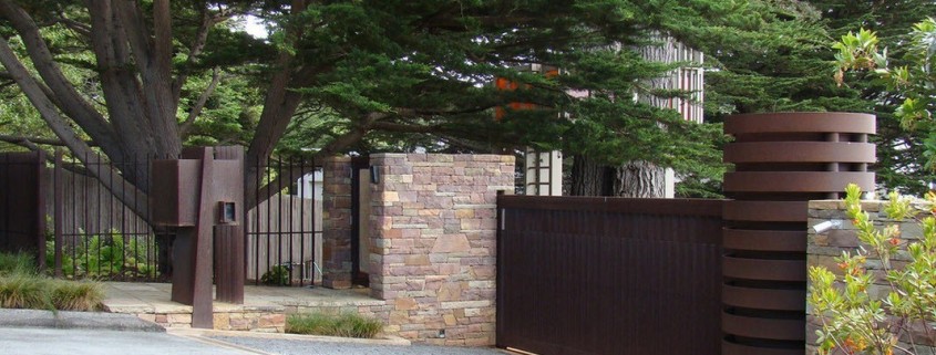 Сетчатые металлические ограждения отлично смотрятся и прослужат дольше, если поместить их на бетонное или железобетонное основание. Если высокий фундамент облицевать плиткой, пластиком или другим материалом в тон к металлическим конструкциям, может получиться весьма интересный образ ограждения, которое будет служить вам долгие годы.
