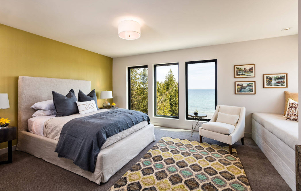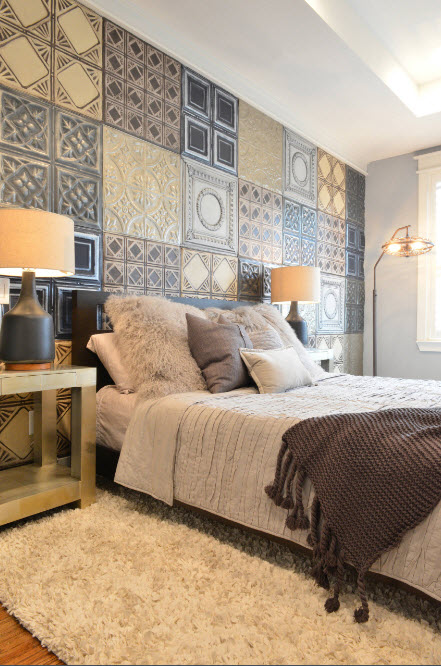 Немногие домовладельцы желают видеть свою спальню в светлом образе без каких-либо акцентов. Такая позиция легко объяснима – для создания умиротворенной атмосферы необходимы спокойные цветовые решения, плавные линии и правильные формы, но для нашего взора нужны и центры фокусировки внимания, контрастные, цветовые пятна. В идеальном варианте эти акцентные элементы должны выделять, подчеркивать основные предметы интерьера. Никто не станет спорить в тем, что координационным центром любого спального помещения является кровать. Оформление стены за изголовьем кровати в качестве акцентной поверхности является одним из важнейших дизайнерских приемов уже многие годы.