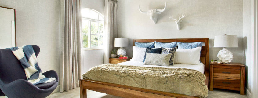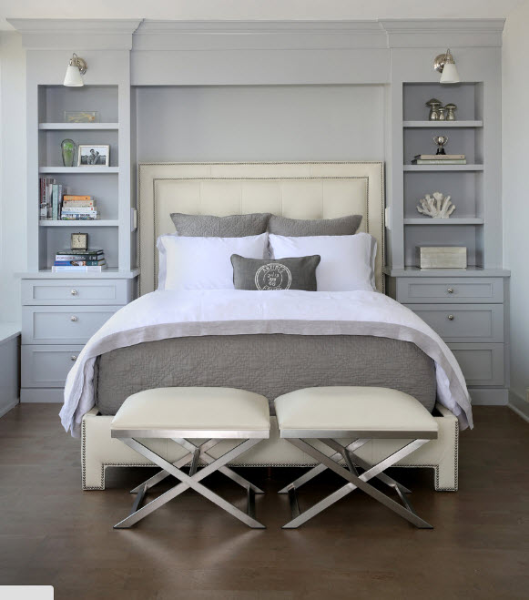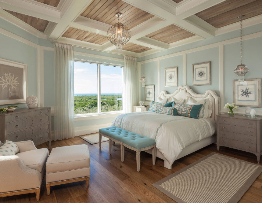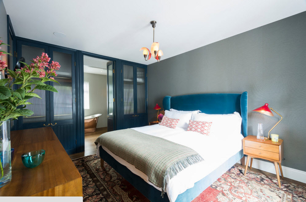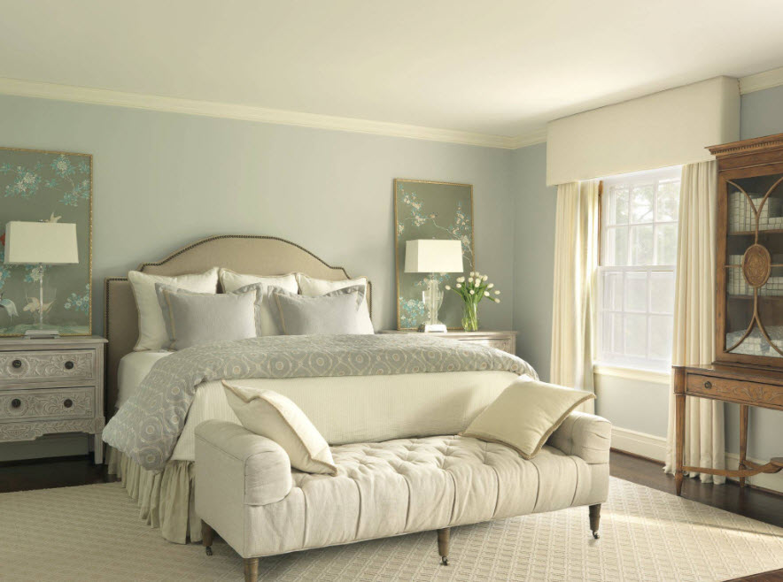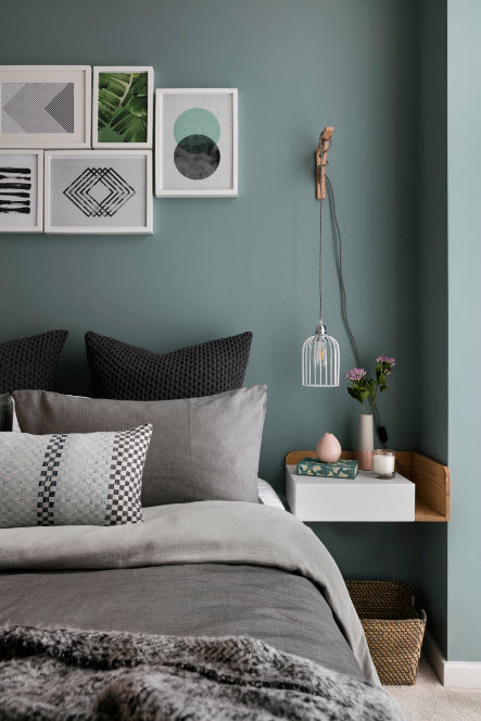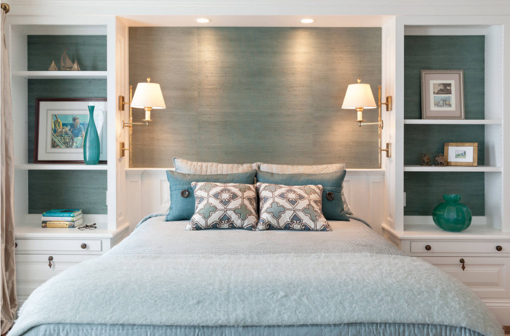 Примеры оформления стен спальни в прохладной цветовой палитре: