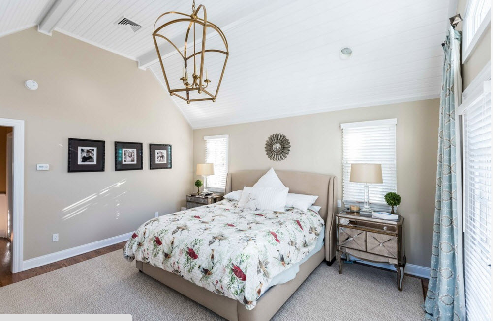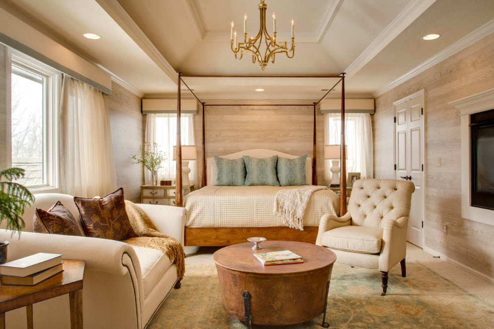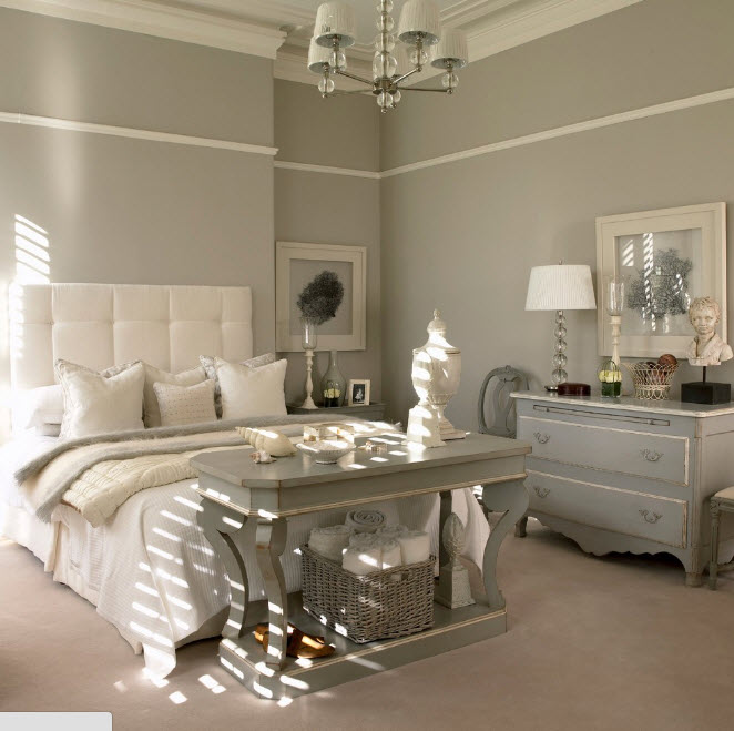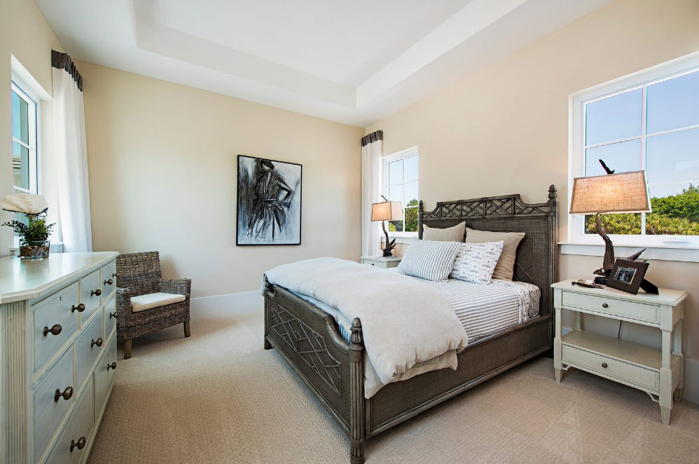 На первый взгляд может показаться, что неизвестных в этом уравнении слишком много и решить его будет сложно. На самом деле разобраться в нюансах выбора цветовой палитры сможет каждый владелец квартиры или частного дома. Если ваша спальня обладает скромными масштабами, то отдайте предпочтение светлым, пастельным оттенкам, избегайте темных и ярких тонов. Оставьте возможность применения любимого яркого оттенка для текстильного оформления кровати или акцентов в декоре. Если спальное помещение расположено с южной стороны, то выбор цветовой палитры многообразен. Хотите создать «прохладную» атмосферу – используйте оттенки серого, синего и зеленого цветов при создании отделки. Комната, находящаяся на северной стороне будет нуждаться в теплых тонах – бежевая, песочная, охристая, молочно-белая гамма станет отличной основой для создания практичного и внешне привлекательного интерьера.