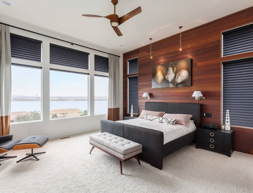 Настенные панели из дерева – один из самых популярных вариантов использования этого вида отделочного материала для спален. Природная теплота, которую привносит в интерьер помещения натуральный материал, его уникальный рисунок и фактура, способны стать стержнем в создании уютной, расслабляющей атмосферы. Именно такой обстановки ожидает большинство городских жителей после непростого рабочего дня для отдыха в своей спальне.
