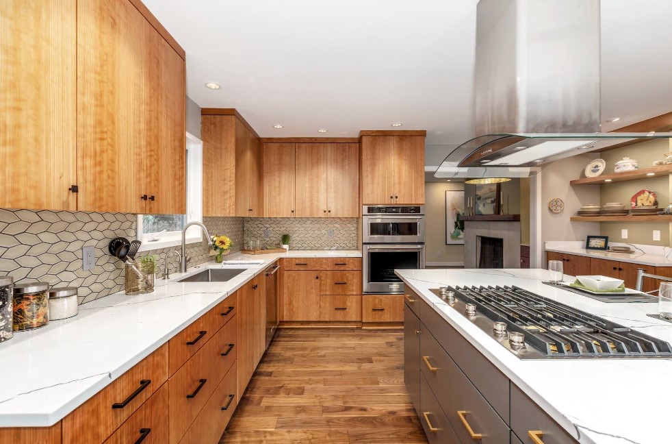 Красивый и модный кухонный интерьер 2024 – это стильный, а главное уютный дизайн, который объединяет в себе множество факторов. Это и использование технологичной и функциональной мебели, современной техники, отделочных материалов и сочетание в себе сразу нескольких стилевых направлений. Что касается цветовой гаммы, то для 2024 свойственная спокойная и сдержанная цветовая палитра, более холодные тона, которые приятно и выгодно сочетать с яркими акцентами.