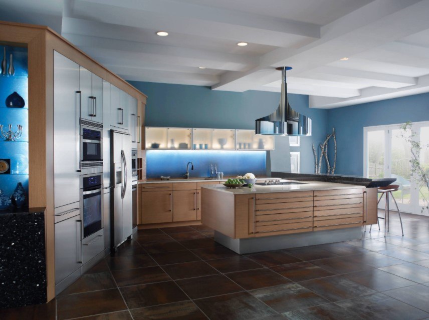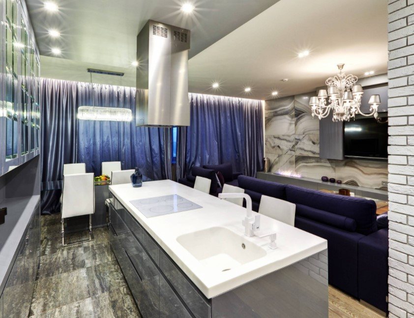 С модерном сочетаются наклонные и островные варианты. А для хай-тека и лофта идеально подходят подвесные стеклянные или купольные металлические устройства.