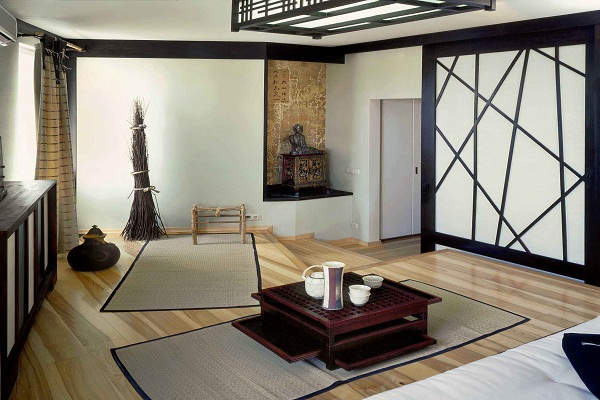 Современный японский интерьер, выполненный в соответствии с европейскими представлениями имеет следующие особенности: