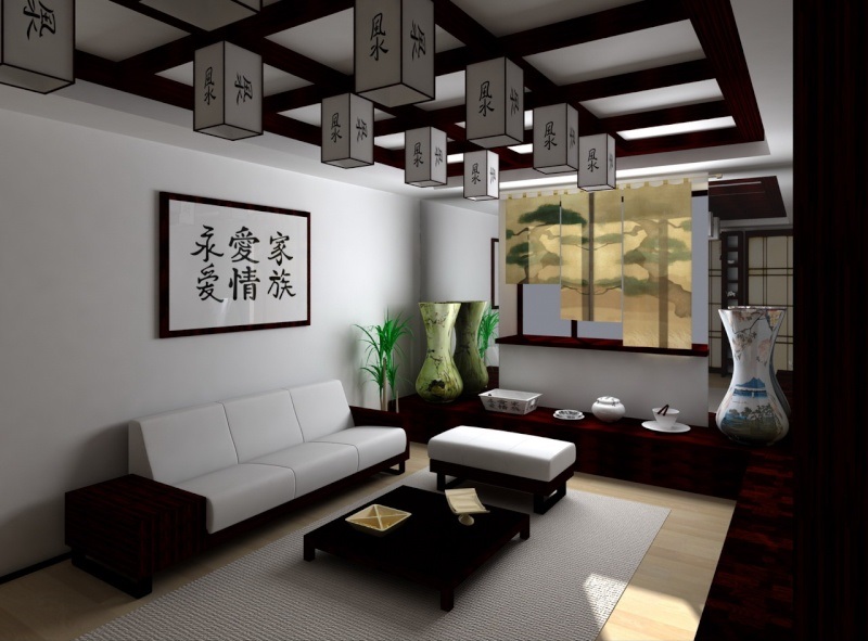Форма шкафов, тумбочек, столиков и прочего должна быть максимально простой и не громоздкой, а высота небольшой. Следует ограничивать количество изделий, сделанных из металла. В интерьере можно использовать японские виды мебели: