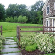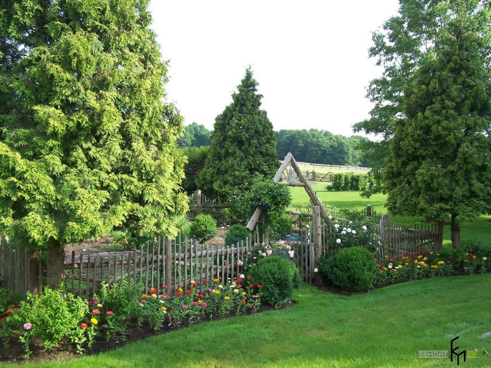 Заборы в деревенском стиле или кантри прекрасно подойдут для зеленых участков, максимально приближенных по своему образу к природному виду. Такие ограды не справятся с защитными функциями в полном объеме, но декоративный эффект будет потрясающим.