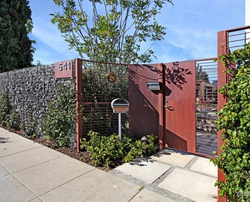 Необычным будет выглядеть забор с вертикальными составляющими разной длины. Для того чтобы ограждение не выглядело глухим, но при этом защищало от посторонних взглядов, можно комбинировать непрозрачные элементы с прозрачными. Например, нижняя часть может оставаться глухой, а верхняя выполняться из ажурных конструкций.
