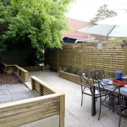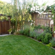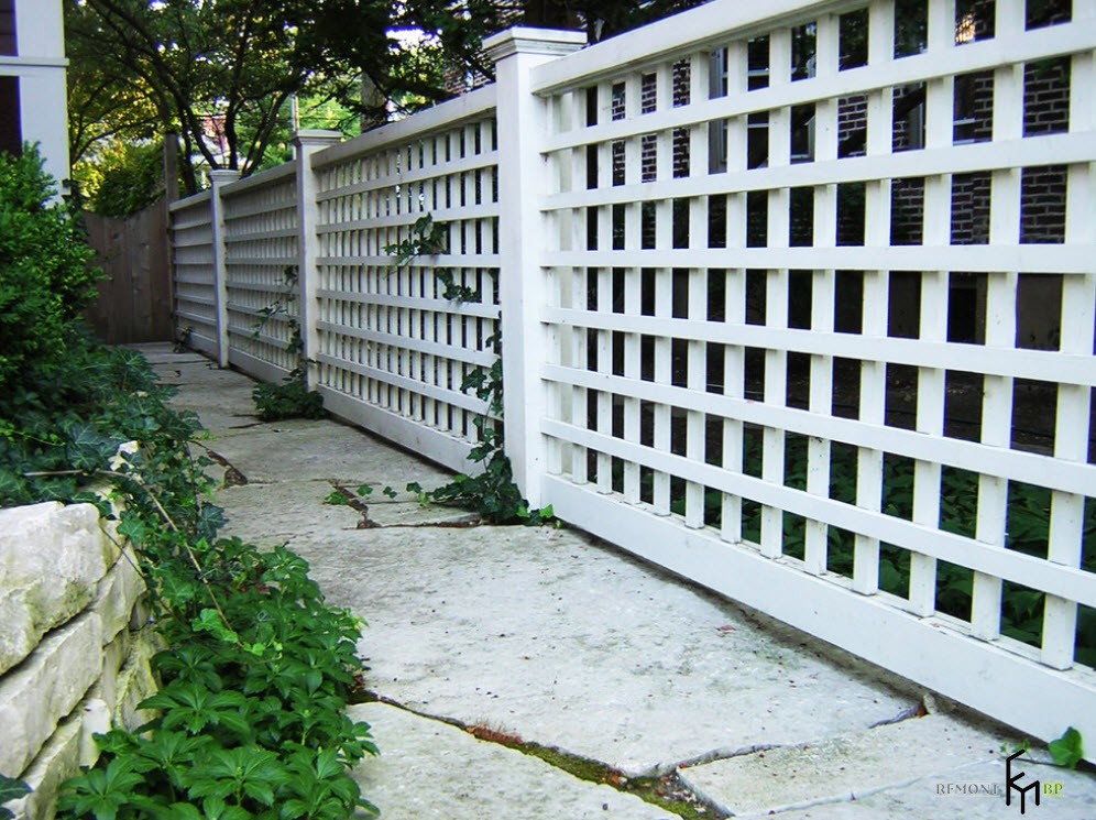 Для зонирования пространства внутри участка можно использовать решетчатый забор. Эта конструкция станет также отличной основой для переплетений «ползучих» растений.