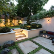 Даже наблюдение за двухэтажным зданием с большими окнами и стеклянными дверями для выхода на задний двор с улицы, позволяет представить насколько светлыми и просторными будут внутренние помещения. Аккуратный и лаконичный ландшафтный дизайн придомовой территории позволяет составить впечатление о любви хозяев к простым и четким формам, гармонии и равновесию во всем, что касается эстетической стороны вопроса оформления экстерьера и интерьера своего жилища.