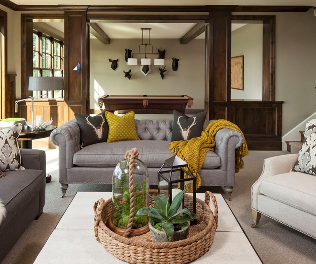 Интересной особенностью стиля является наличие в интерьере элементов, которые будут, несомненно, привлекать, при чем, постоянно, внимание ваших гостей. Это может быть все, что угодно: чучело или голова животного, зеркало в неожиданном, но, тем не менее, удачном месте, барельефы известных людей в натуральную величину, панно на тему, казалось бы, не соответствующую статусу комнаты и т.п. Короче, всему, что может удивить, должно найтись место в вашей комнате.