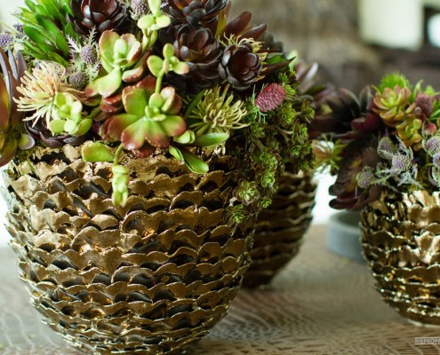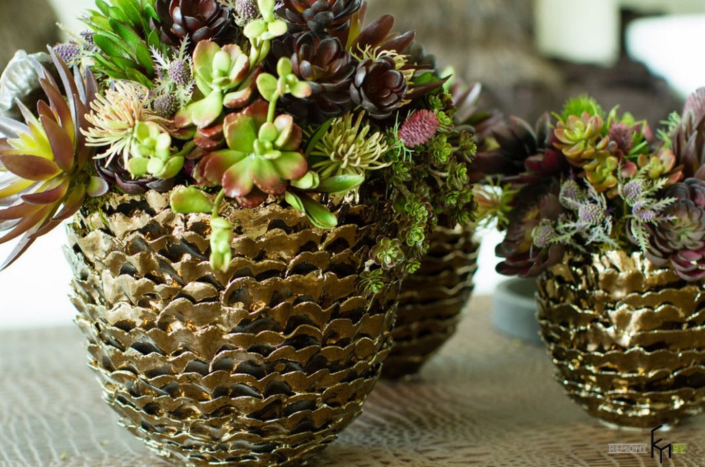 Отличным украшением могут быть глиняные горшки для комнатных растений, выполненные в виде экзотических плодов.