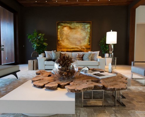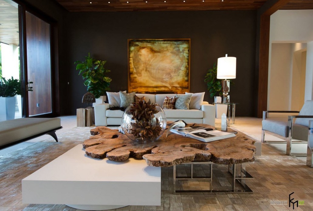 Очень красиво и оригинально смотрится мебель, сделанная из натурального дерева. Например, стол в гостиной, имеющий столешницу в виде среза ствола баобаба, приятно удивит ваших гостей своим необычным видом.