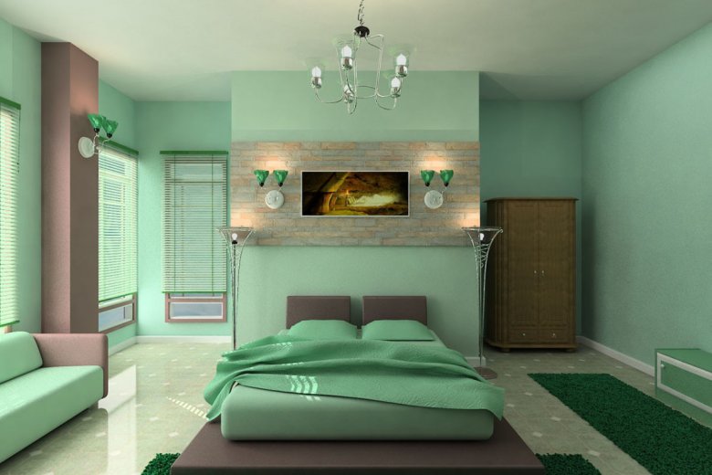 Как известно, зелёный цвет относится к категории наиболее благоприятных для визуального восприятия. Он чудесно снимает нервное напряжение, помогает расслабиться и согласно учениям фен-шуй способен избавлять от негативной энергии, что в последствие благоприятно сказывается на физическом и духовном состоянии человека. Поэтому дизайнеры достаточно часто используют его в дизайне спальных комнат, ведь именно эти помещения предназначены для отдыха, релаксации и восстановления сил хозяев после тяжёлого трудового дня, стрессовых и напряжённых ситуаций. Однако зелёный, как и многие другие цвета обладает своим характером и нужно уметь правильно реализовать его в дизайне комнаты о чём мы предлагаем поговорить в материале ниже.