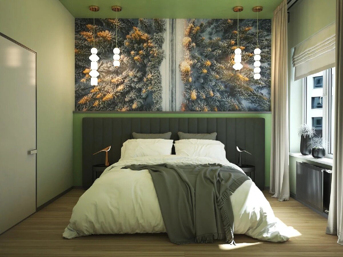 Зеленый цвет в интерьере спальни – свежий акцент для гармонии и баланса