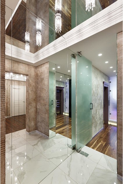 На заметку: в помещении с зеркальными панелями лучше избегать сильно нагревающихся светильников – они могут деформировать зеркальное покрытие.