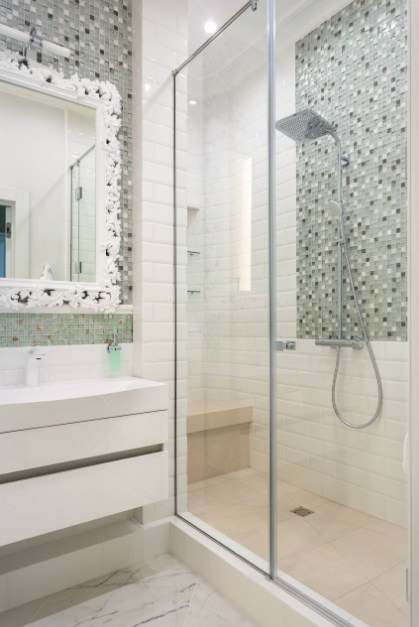 - Зеркало в плитке в ванной