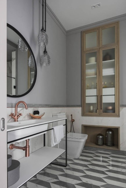 Не менее значимый для красивого интерьера и комфортного использования нюанс – форма зеркала для ванной. Самые популярные формы – квадрат и прямоугольник, круг и овал, но можно встретить необычные формы: звезды, сердечки, волны.