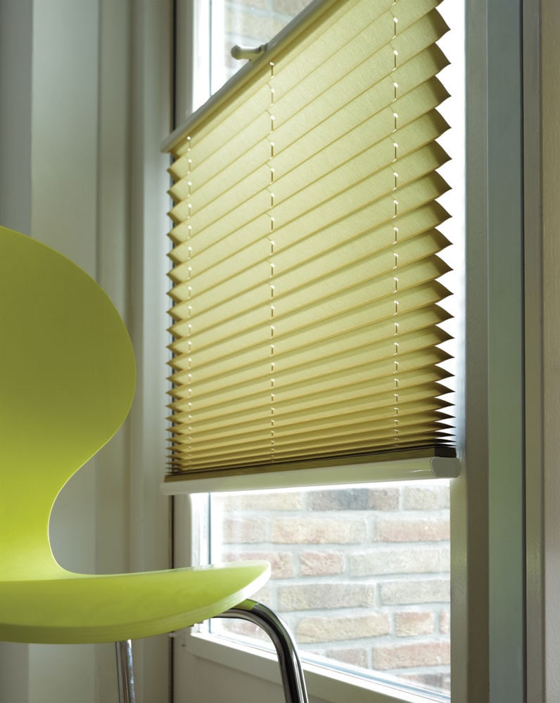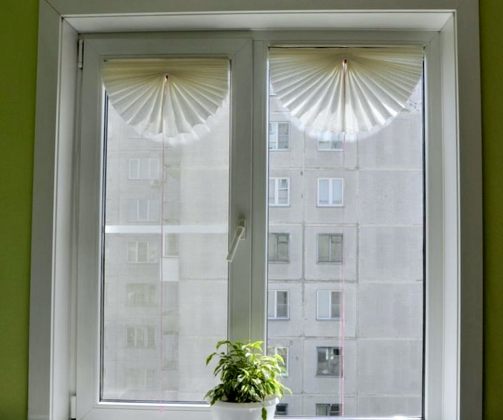 Существует еще один вид жалюзи – плиссе. Это довольно большое полотно ткани или бумаги, сложенное гармошкой. По краям такой конструкции расположены направляющие нити, что и позволяет их регулировать в желаемом положении. Такой вариант прекрасно подходит для окон нестандартной формы.