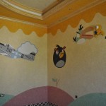 Жидкие обои наносить на стены нужно небольшими порциями при помощи металлического мастерка. Толщина покрытия не должна быть не более 0,5 см. При необходимости, смесь можно разбавить, но не больше, чем 1 литр на мешок обоев. Прежде чем начинать следующий мешок нужно смешать его с остатками предыдущего, так как они могут немного различаться в цвете. Когда все стены обклеены обоями, то мелкие шероховатости нужно загладить смоченным в воде мастерком, а углы откосов подровнять картонным ножиком.