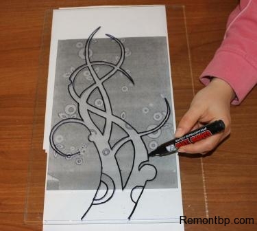 - Приготовьте из картона трафарет с необходимым рисунком;