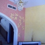 Если вам не нравится скучная однотонность стен, то при помощи нехитрых приемов из жидких обоев можно сделать изящный рисунок.