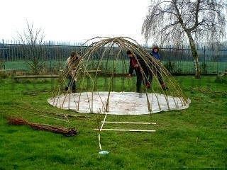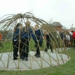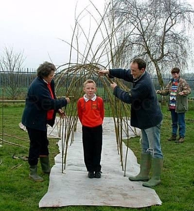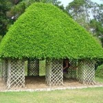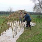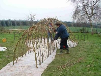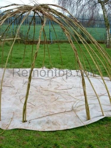 - Весной нужно подстригать веточки, которые идут от ветвей второго порядка. Так же нужно удалять высохшие и больные ветви. Через несколько лет стволы одеревенеют, а ветви будут переплетены, самостоятельно поддерживая форму. Опорную конструкцию можно будет демонтировать. Для большей сохранности живой беседки лучше распилить основу каркаса и извлечь из переплетения ветвей по частям.