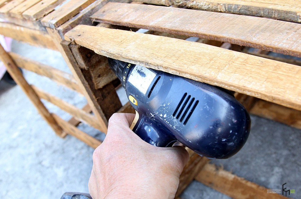 С внешней стороны будущего стола прикрепите ящики друг к другу при помощи двух-трех саморезов. Это придаст конструкции дополнительную прочность.
