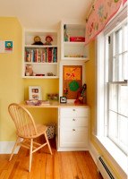Еще один способ использования спального помещения многофункционально – добавление к зоне для чтения источника книг – домашней библиотеки. Для встраивания или установки книжного стеллажа необходимо не так много полезного пространства комнаты – для размещения книг подойдут неглубокие открытые полки. Одна из стен без окон вполне подойдет для этих целей. Или же можно использовать пространство вокруг окна для встраивания изготовленного на заказ, идеально подходящего по размерам книжного шкафа или стеллажа.