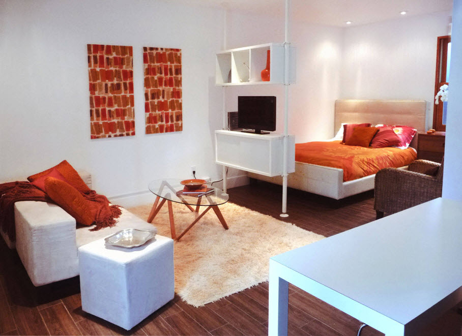 Многофункциональные интерьеры прочно входят в нашу повседневность. Никого не удивляют совмещенные кухни, столовые и гостиные, соединение кабинета с библиотекой, а спальни с гардеробной. Даже необычные ванны, расположенные прямо в спальне, способные создать шок еще пару десятков лет назад, в наши дни никому не кажутся странными. Условно, можно все принципы соединения различных функциональных сегментов в одном помещении разделить на два вида – в первой случае совмещение зон вызвано нехваткой пространства, когда хозяева просто вынуждены идти на подобные мера, второй случай имеет противоположную концепцию – большое пространство можно использовать для расположения нескольких жизненных сегментов. В данной публикации мы поговорим о совмещении зоны гостиной со спальней и рассмотрим варианты как нехватки полезного пространства, так и достатка квадратных метров для размещения не только спального сегмента.